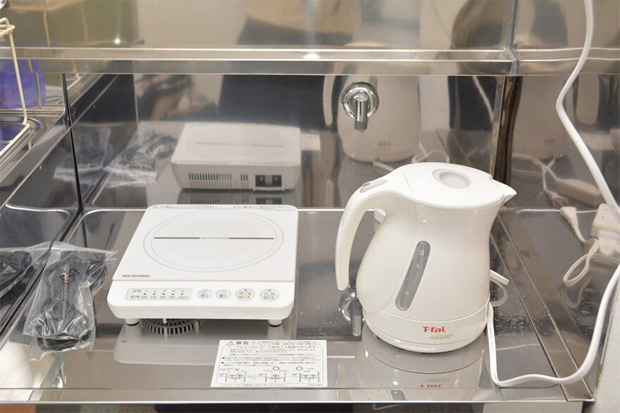 ◆ホットプレート、たこ焼き器を使用される場合は、電源ブレーカーの容量上、家電の同時使用はご遠慮ください。もしブレーカーが落ちた場合は、スペース内の玄関上にブレーカーボックスがありますので、お客様で復旧をお願いいたします。(家庭用のブレーカーと同じタイプです)